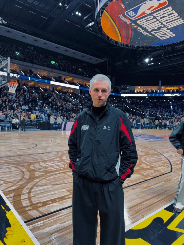Marcus at the NBA game in Berin representing Balenciaga.